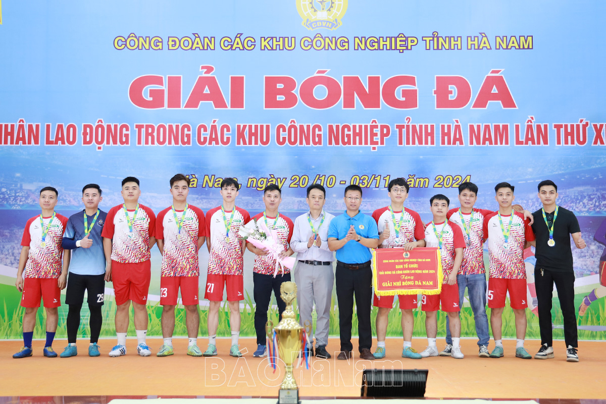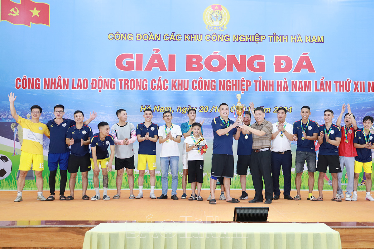 Chiều 3/11, tại Trung tâm Văn hóa, thể thao công nhân lao động, Khu Công nghiệp (KCN) Châu Sơn, thành phốP Phủ Lý, Công đoàn các KCN tỉnh tổ chức bế mạc Giải bóng đá công nhân lao động trong các KCN tỉnh lần thứ XII, năm 2024. Lãnh đạo Liên đoàn Lao động tỉnh, Ban Quản lý các KCN tỉnh đến dự, động viên và trao thưởng cho các đội bóng tham dự giải.