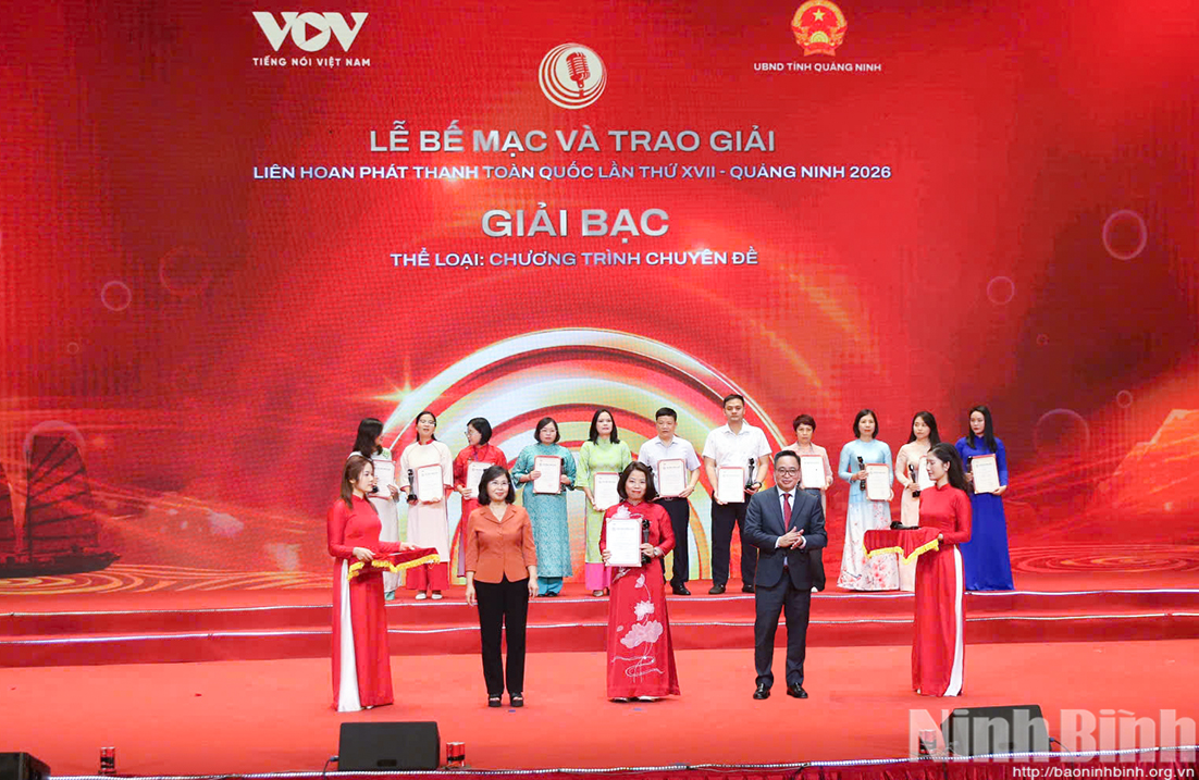 Tại lễ bế mạc, Ban Tổ chức Liên hoan Phát thanh toàn Quốc lần thứ XVII Quảng Ninh 2026 đã trao 24 giải Vàng, 37 giải Bạc, 71 giải Đồng, 60 giải Khuyến khích. Bên cạnh đó, Ban Tổ chức đã trao 29 giải cá nhân, ekip xuất sắc. Đặc biệt, tại Liên hoan, Báo và phát thanh, truyền hình Ninh Bình đoạt 1 giải Bạc, 2 giải Đồng. Cụ thể, tác phẩm “Nghị quyết 68 Động lực để kinh tế tư nhân Ninh Bình bứt phá” của nhóm tác giả Phạm Thị Thu Hằng, Nguyễn Văn Sải, Vũ Thị Minh, Nguyễn Thị Quỳnh Hương, Ngô Thị Thùy Dương, Nguyễn Thị Hải Nhẫn đạt giải Bạc thể loại chương trình chuyên đề; tác phẩm “Ninh Bình bảo tồn và phát huy giá trị di sản” của nhóm tác giả Nguyễn Văn Sải, Nguyễn Thị Quỳnh Hương, Trần Thị Hồng Giang, Ngô Thị Thùy Dương, Nguyễn Thị Hải Nhẫn, Mai Thị Dung, Nguyễn Xuân Hà đạt giải Đồng thể loại chương trình phát thanh trực tiếp; tác phẩm “Những người lặng lẽ giữ hồn di sản” của nhóm tác giả Phạm Thị Chung, Đinh Thanh Nhàn, Nguyễn Thị Quỳnh Hương, Vũ Thị Thu Hà thể loại Podcast đạt giải Đồng.