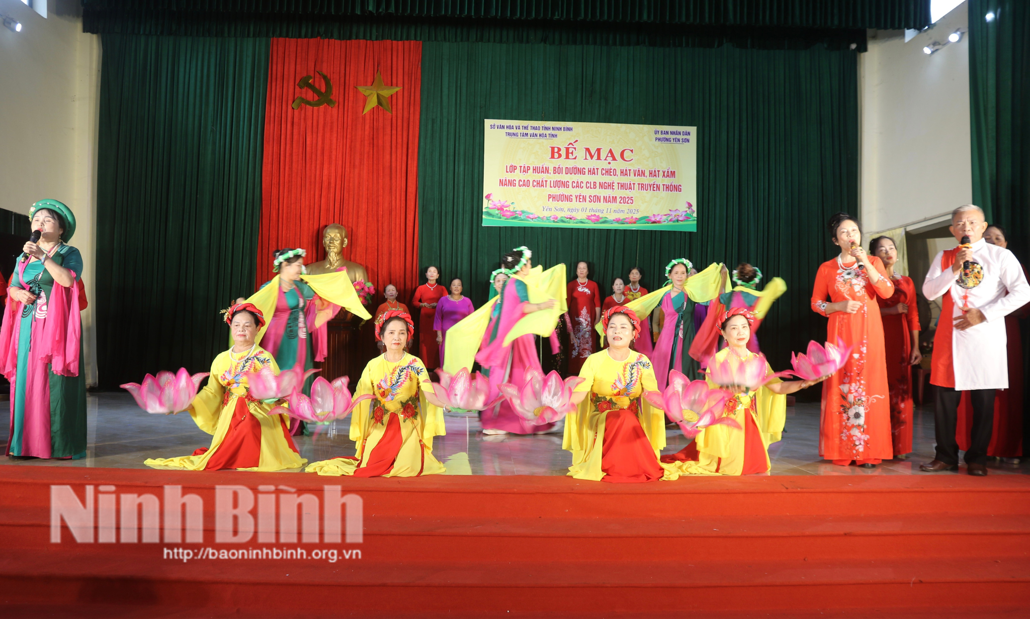 Lớp tập huấn, bồi dưỡng hát Chèo, hát Văn, hát Xẩm được tổ chức từ ngày 14/10 đến 1/11 với sự tham dự của 50 học viên, là những hạt nhân văn nghệ của các Câu lạc bộ văn nghệ quần chúng ở các thôn, bản, tổ dân phố, trường học trên địa bàn phường Yên Sơn.