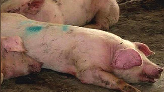 Lợn bệnh sốt cao (40 - 41,5 độ C), khó thở, tần số mạch tăng. Da ở vùng mũi, tai, chân và sau đó toàn cơ thể có màu tím xanh. Lợn bệnh chết trong vòng 24 - 36 giờ. Lợn đột tử thường có dấu hiệu máu chảy kèm với bọt thải ra từ mũi.