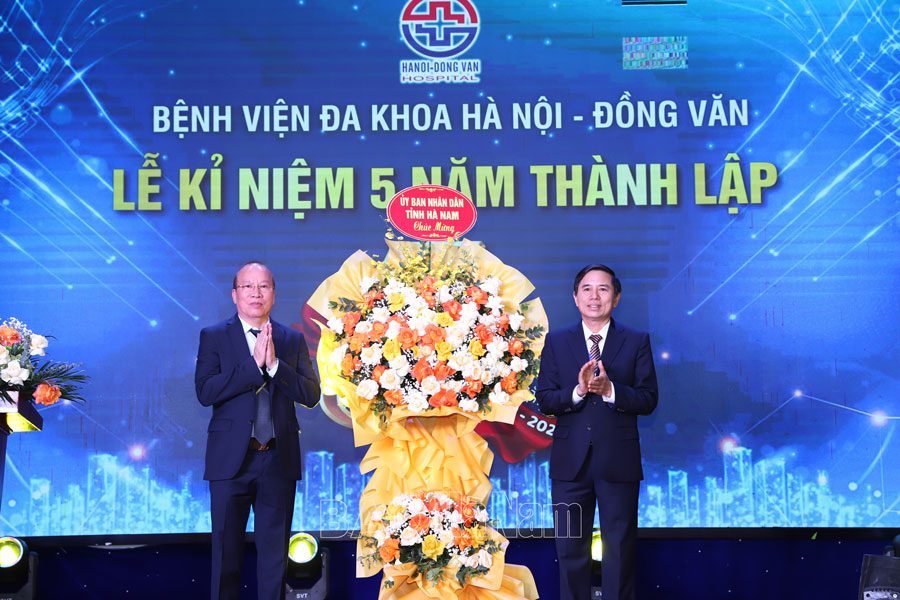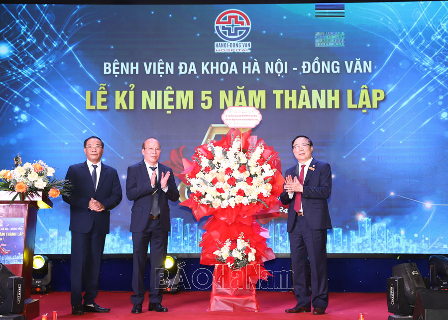 Chiều 4/1 Bệnh viện Đa khoa (BVĐK) Hà Nội – Đồng Văn long trọng tổ chức lễ kỷ niệm 5 năm ngày thành lập. Đồng chí Bùi Thị Minh Hoài, Ủy viên Bộ Chính trị, Bí thư Thành ủy Hà Nội gửi lẵng hoa chúc mừng.