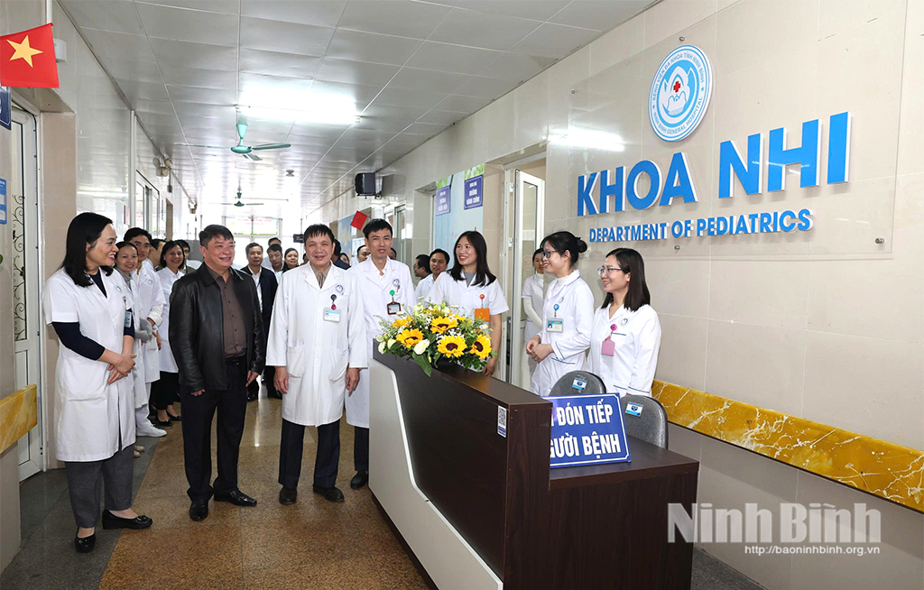 Các đồng chí lãnh đạo Sở Y tế và Bệnh viện Đa khoa tỉnh Ninh Bình tham quan Khoa Nhi.