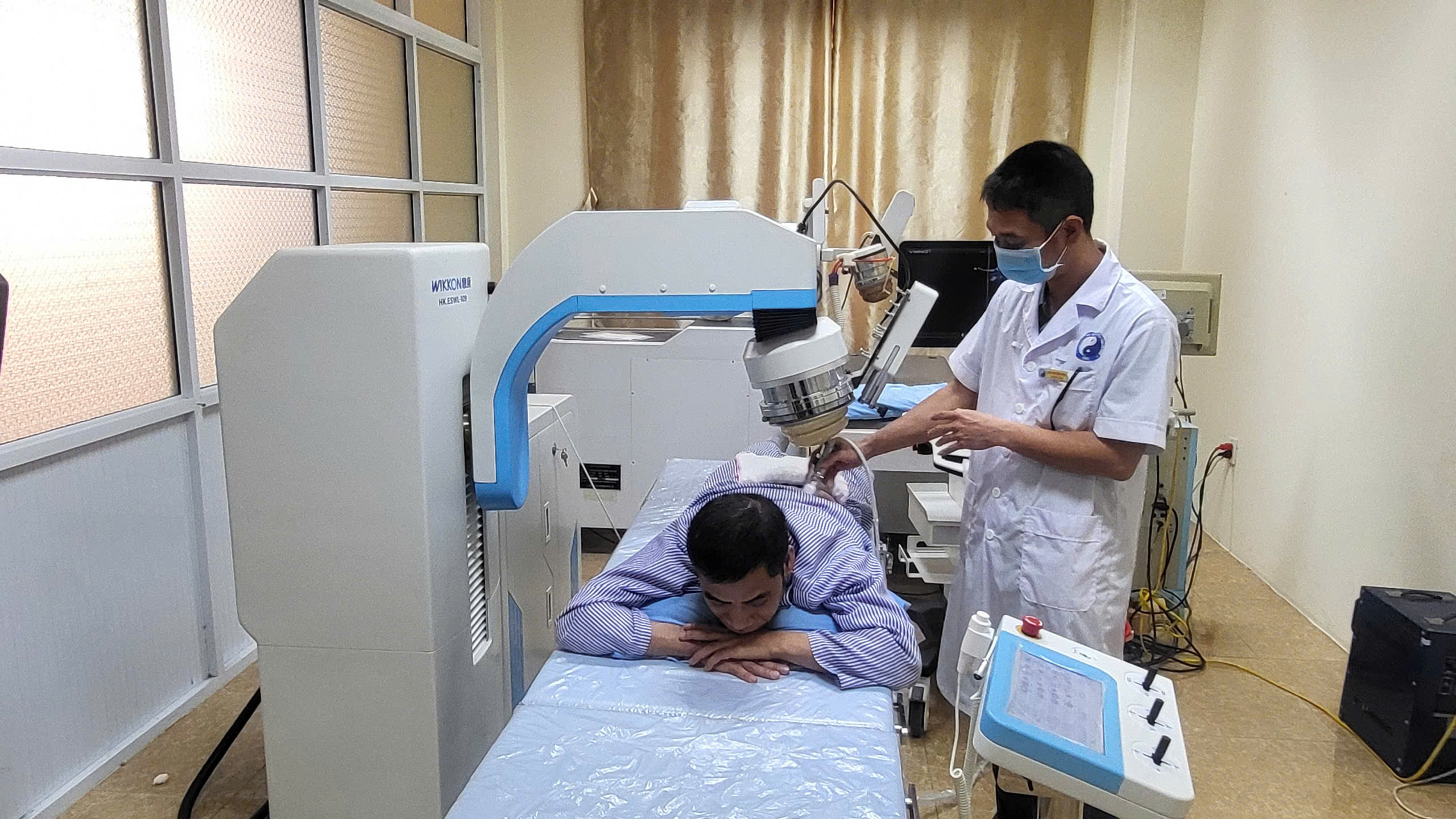 Bác sỹ Bệnh viện Y học cổ truyền Hà Nam thực hiện kỹ thuật nội soi tán sỏi ngoài cơ thể cho bệnh nhân.
