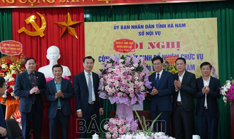 Sau khi nghe đại diện lãnh đạo Sở Nội vụ công bố Quyết định của Chủ tịch UBND tỉnh về việc bổ nhiệm chức vụ Giám đốc Sở Nội vụ đối với đồng chí Lê Xuân Huy, đồng chí Nguyễn Anh Chức, Ủy viên BTV Tỉnh ủy, Phó Chủ tịch Thường trực UBND tỉnh đã trao Quyết định và tặng hoa chúc mừng tân Giám đốc Sở Nội vụ Hà Nam.