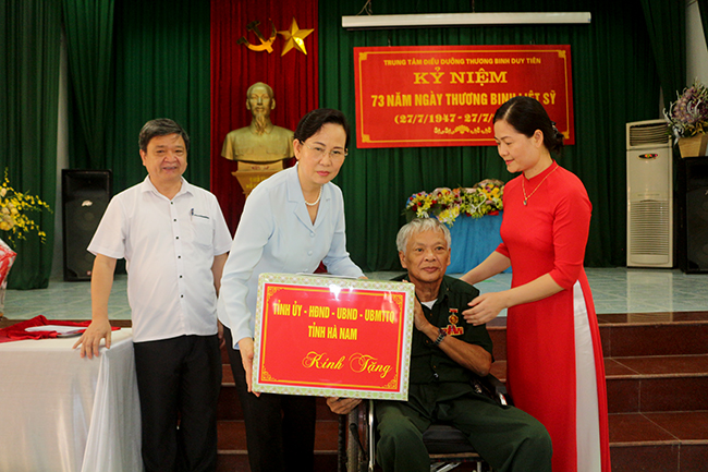 Nói chuyện với các thương, bệnh binh, đồng chí Nguyễn Thiện Nhân, Ủy viên Bộ Chính trị, Bí thư Thành ủy TP Hồ Chí Minh bày tỏ xúc động được đến thăm các thương, bệnh binh. Gửi lời cảm ơn sâu sắc tới các thương, bệnh binh, đồng chí cho biết: những năm qua cấp ủy, chính quyền và người dân TP Hồ Chí Minh luôn quan tâm, chăm sóc, tạo những điều kiện tốt nhất cho các thương, bệnh binh trên địa bàn thành phố. Dịp 27/7 hàng năm, thành phố đều cử các đoàn ra thăm, tặng quà các Trung tâm điều dưỡng thương binh khu vực phía Bắc nói chung, các trung tâm điều dưỡng thương binh trên địa bàn tỉnh Hà Nam nói riêng.