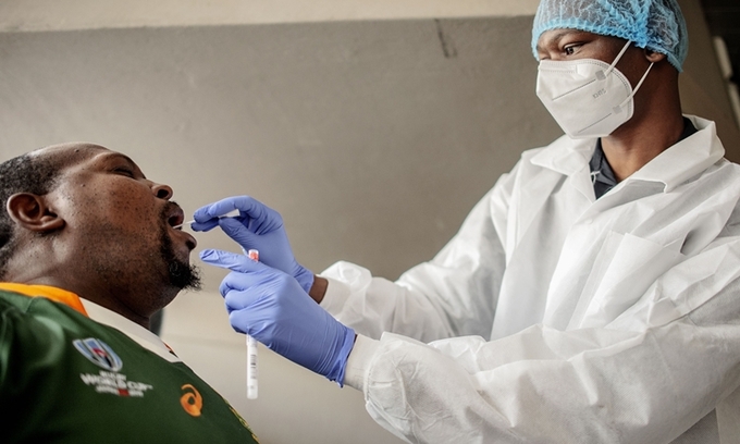 Nhân viên y tế lấy mẫu xét nghiệm nCoV ở Johannesburg, Nam Phi, hôm 18/12. Ảnh: AFP.