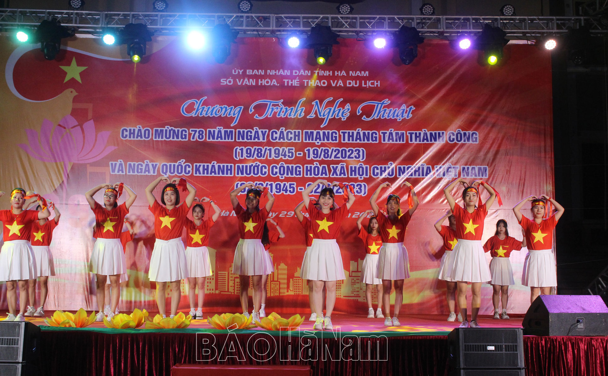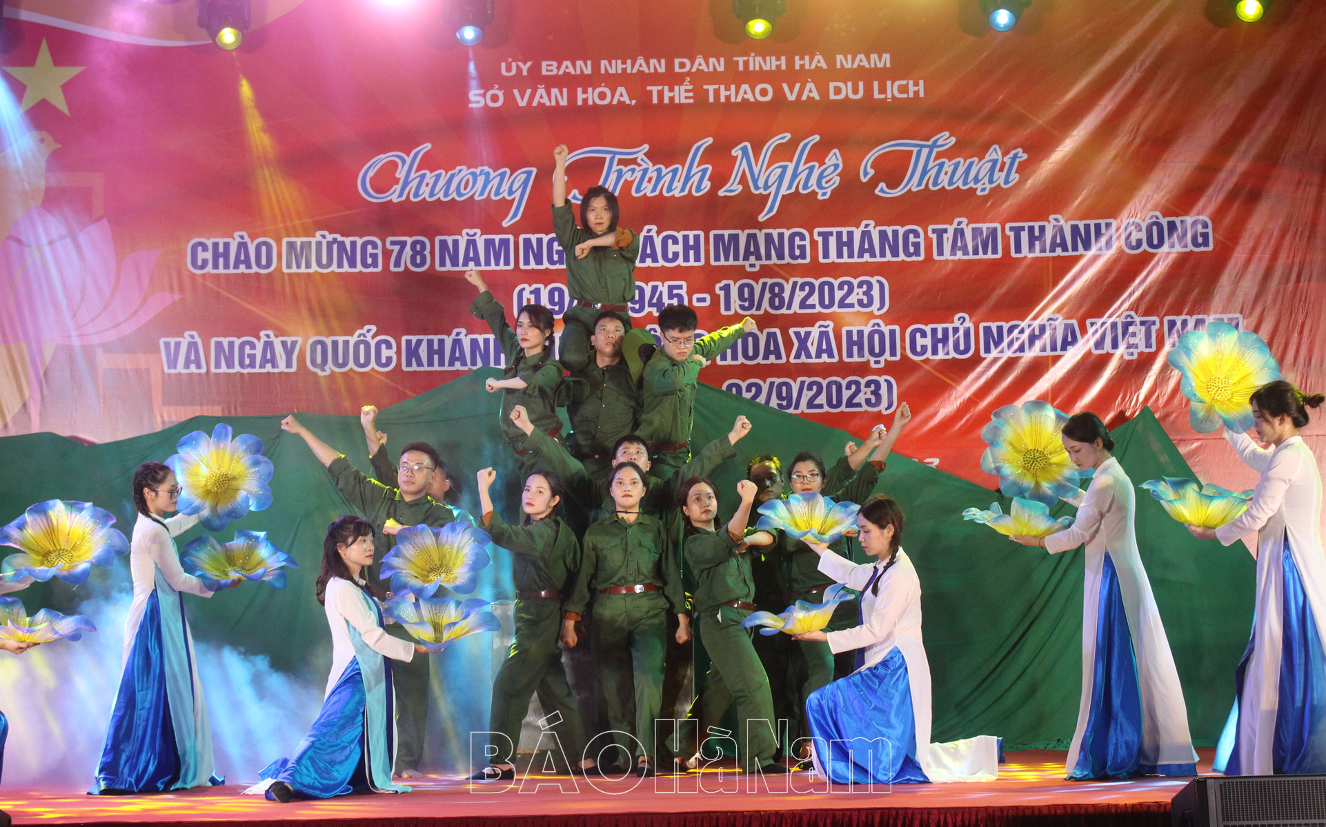 Chương trình nghệ thuật với chủ đề “Vững bền một cõi non sông” do các ca sỹ, nghệ sĩ Trung tâm Văn hóa Nghệ tỉnh thuật phối hợp cùng các đơn vị: Công an tỉnh, Cục Thuế tỉnh, Hội Liên hiệp Phụ nữ tỉnh, Trường Cao đẳng Y tế Hà Nam và Trường THPT Chuyên Biên Hòa biểu diễn.