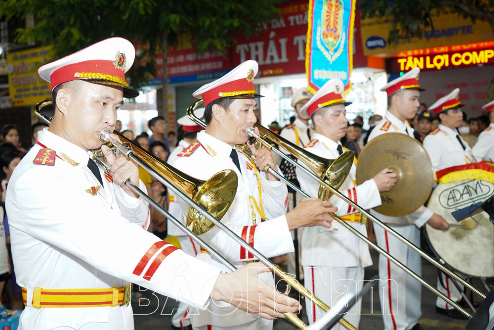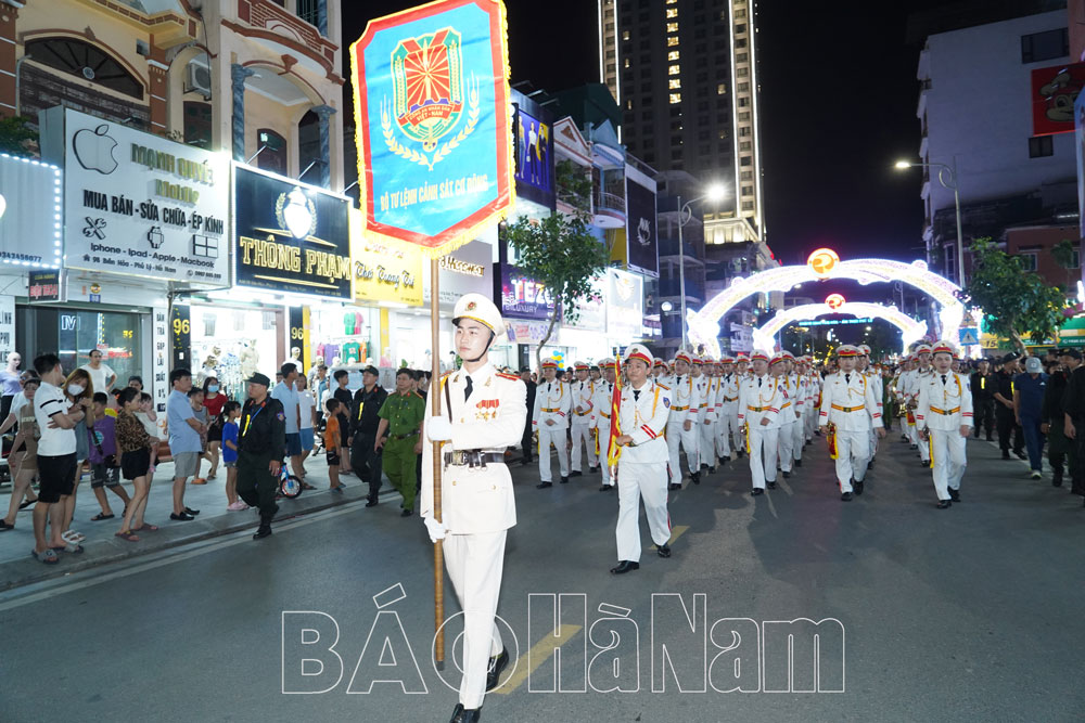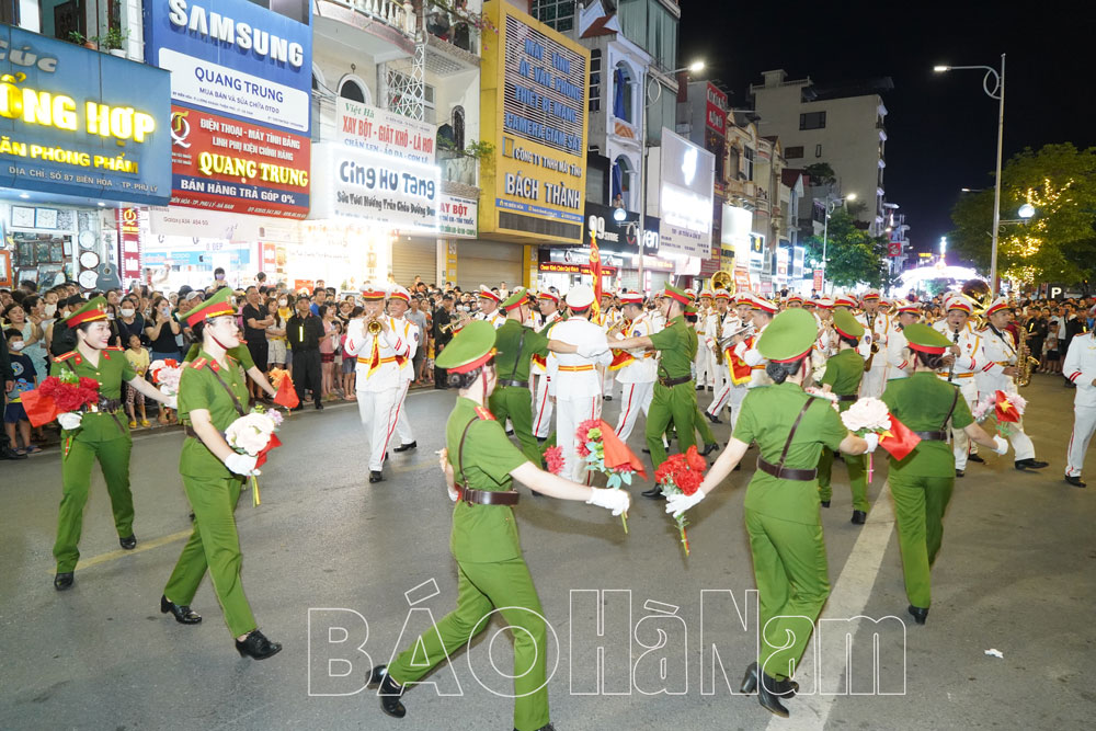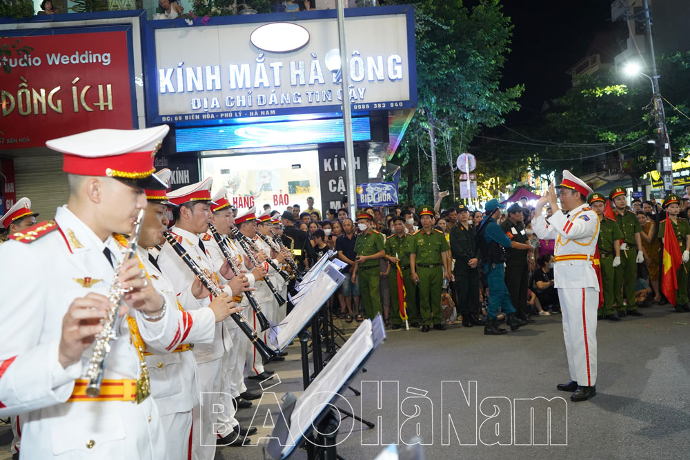 Tối ngày 27/5, tại không gian Phố đi bộ thành phố Phủ Lý, Đoàn Nghi lễ Công an nhân dân thuộc Bộ Tư lệnh Cảnh sát Cơ động, Bộ Công an đã tổ chức chương trình diễu hành, biểu diễn nhạc kèn phục vụ nhân dân. Hàng nghìn người dân và du khách đã hội tụ tại đây để thưởng thức nhiều tác phẩm nổi tiếng về quê hương đất nước, ca ngợi Đảng, Bác Hồ, lực lượng Công an nhân dân qua phần trình diễn của dàn nhạc kèn của Đoàn Nghi lễ Công an nhân dân.