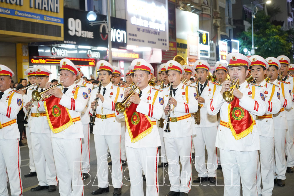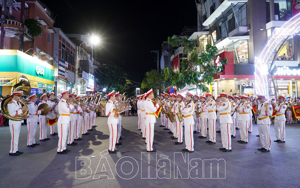 Đoàn quân nhạc diễu hành trên phố đi bộ TP. Phủ Lý và biểu diễn các bài nhạc truyền thống phục vụ nhân dân và du khách.