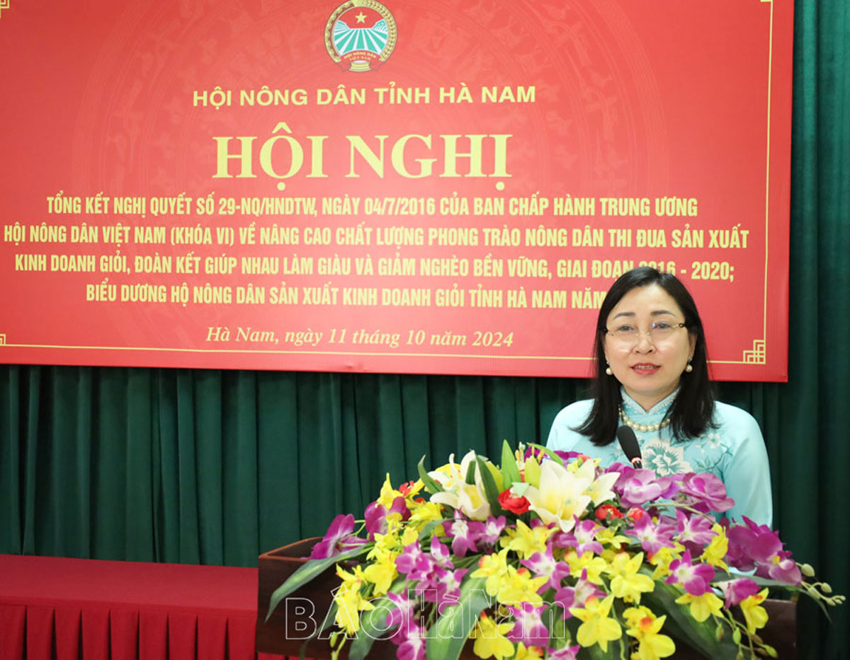Chào mừng kỷ niệm 94 năm Ngày thành lập Hội Nông dân Việt Nam (14/10/1930 - 14/10/2024), chiều 11/10, Hội Nông dân (HND) tỉnh tổ chức hội nghị tổng kết phong trào nông dân thi đua sản xuất, kinh doanh giỏi (SXKDG), đoàn kết giúp nhau làm giàu và giảm nghèo bền vững giai đoạn 2016-2020; biểu dương nông dân SXKDG tỉnh Hà Nam năm 2024.
