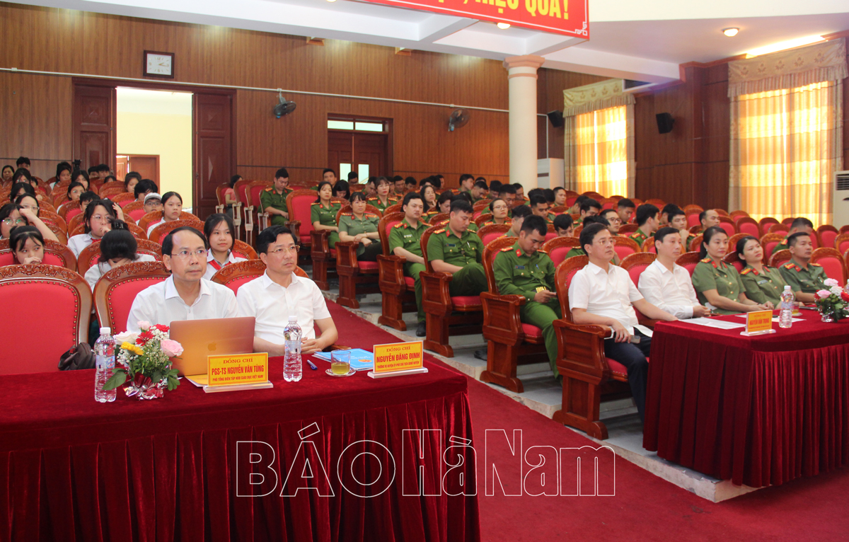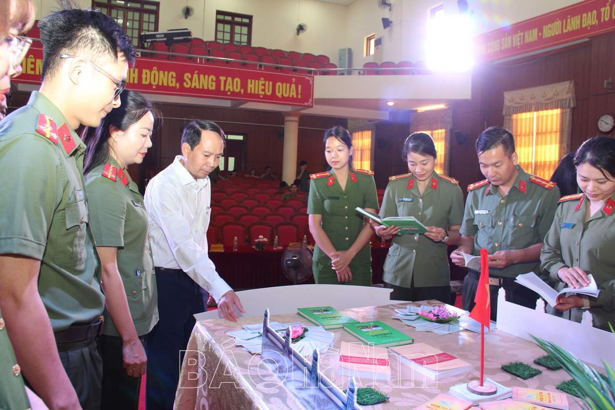 PGS- TS Nguyễn Thanh Tùng, Phó Tổng Biên tập NXB Giáo dục Việt Nam nói chuyện chuyên đề “Tầm quan trọng của sách đối với đời sống, chính trị, văn hóa, giáo dục hiện nay”.Các đại biểu tham quan, nghe thuyết minh các mô hình sách nghệ thuật.Cán bộ, chiến sỹ công an và giáo viên, học sinh Trường THCS Nguyễn Khuyến tham quan các mô hình trưng bày sách nghệ thuật.
