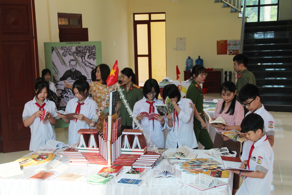 Trong khuôn khổ Ngày Sách và Văn hóa đọc Việt Nam lần thứ 3, các đại biểu, thầy cô giáo và các em học sinh được tham quan và nghe thuyết minh các mô hình sách nghệ thuật; nghe PGS- TS Nguyễn Thanh Tùng, Phó Tổng Biên tập NXB Giáo dục Việt Nam nói chuyện chuyên đề “Tầm quan trọng của sách đối với đời sống, chính trị, văn hóa, giáo dục hiện nay”.