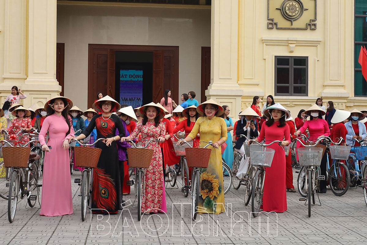 Sáng 6/3, tại Nhà văn hóa trung tâm huyện, Liên đoàn Lao động (LĐLĐ), Hội Liên hiệp Phụ nữ (LHPN), Trung tâm Văn hóa, Thông tin và Thể thao huyện Bình Lục phối hợp tổ chức Lễ phát động hưởng ứng “Tuần lễ Áo dài” với chủ đề “Tuần hành với giao thông xanh”. Dự chương trình có lãnh đạo Sở Văn hóa – Thể thao và Du lịch, UBND huyện Bình Lục cùng 200 cán bộ, đoàn viên thuộc Hội LHPN, công đoàn các cơ quan, đơn vị, xã, thị trấn trên địa bàn.