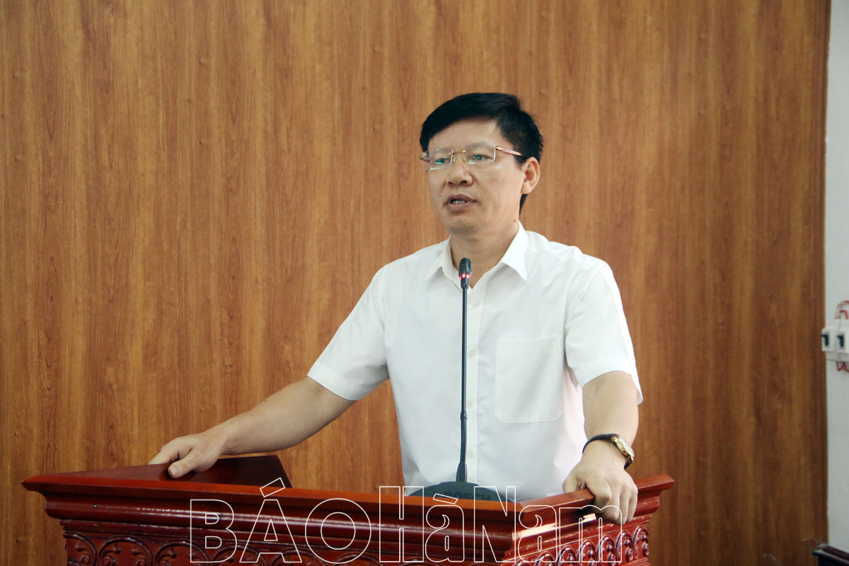 Lãnh đạo thị trấn Bình Mỹ (Bình Lục) phát biểu ý kiến tại hội nghị.