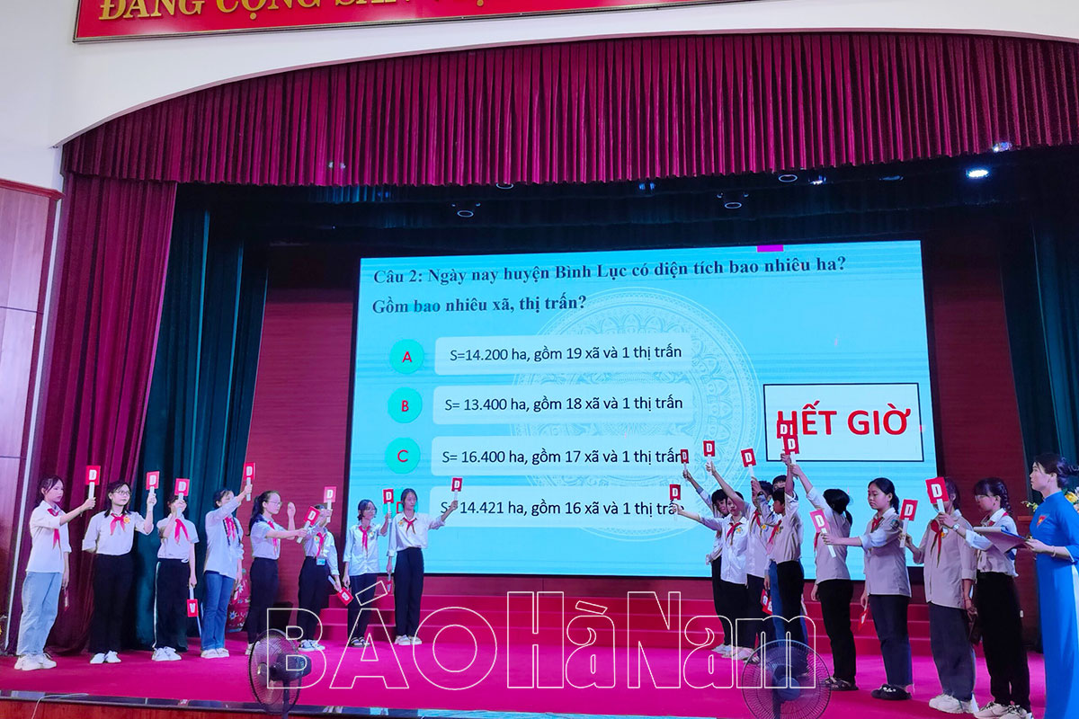 Thực hiện chương trình công tác Đoàn và phong trào thanh thiếu nhi năm 2023, Ban Thường vụ Huyện đoàn Bình Lục phối hợp với Phòng Giáo dục & Đào tạo huyện tổ chức Hội thi “Tự hào truyền thống quê hương” năm 2023. Đây cũng là hoạt động có ý nghĩa thiết thực của Huyện đoàn Bình Lục chào mừng kỷ niệm 133 năm Ngày sinh Chủ tịch Hồ Chí Minh (19/5/1890-19/5/2023) và 82 năm ngày thành lập Đội TNTP Hồ Chí Minh (15/5/1941-15/5/2023).