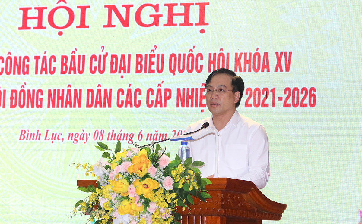 Phát biểu tại hội nghị, đồng chí Đặng Thanh Sơn, Ủy viên BTV Tỉnh ủy, Phó Chủ tịch Thường trực HĐND tỉnh biểu dương, ghi nhận những kết quả Bình Lục đạt được trong cuộc bầu cử ĐBQH khóa XV và đại biểu HĐND các cấp nhiệm kỳ 2021-2026. Đồng thời, khẳng định: thành công của cuộc bầu cử cho thấy cử tri trên địa bàn huyện đã thể hiện trách nhiệm cao và thực hiện đầy đủ nghĩa vụ công dân trong công tác bầu cử, góp phần để ngày bầu cử trở thành đợt sinh hoạt chính trị dân chủ rộng rãi, ngày hội lớn của toàn dân.