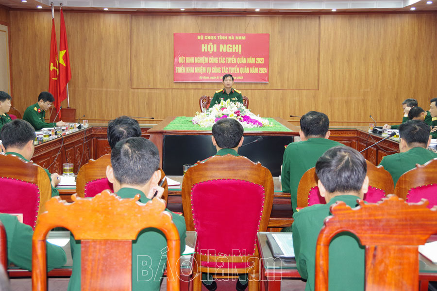 Kết luận hội nghị, Đại tá Trịnh Hồng Phong - Phó Chỉ huy trưởng,Tham mưu trưởng Bộ CHQS tỉnh lưu ý các đơn vị, địa phương trong tuyển chọn gọi công dân nhập ngũ phải lưu ý việc rút kinh nghiệm những mặt còn hạn chế của năm trước. Cùng với đó, tăng cường phối hợp đẩy mạnh thông tin, tuyên truyền, nâng cao nhận thức của công dân, nhất là công dân trong độ tuổi thực hiện NVQS. Đồng thời, triển khai đồng bộ, chặt chẽ các bước, các quy trình trong tuyển quân. Thực hiện tuyển quân tròn khâu, đặc biệt là tổ chức chu đáo, ấn tượng ngày hội tòng quân mừng thanh niên lên đường nhập ngũ tại 6 huyện, thành phố, thị xã, tạo khí thế sôi động, phấn khởi cho công dân lên đường nhập ngũ, phấn đấu hoàn thành 100% chỉ tiêu giao quân năm 2024 với chất lượng tốt.