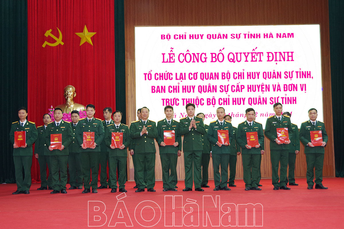 Tại hội nghị, Bộ CHQS tỉnh cũng đã công bố và trao quyết định nhân sự cán bộ; quyết định thành lập tổ chức đảng, đảm bảo phù hợp với tổ chức biên chế.