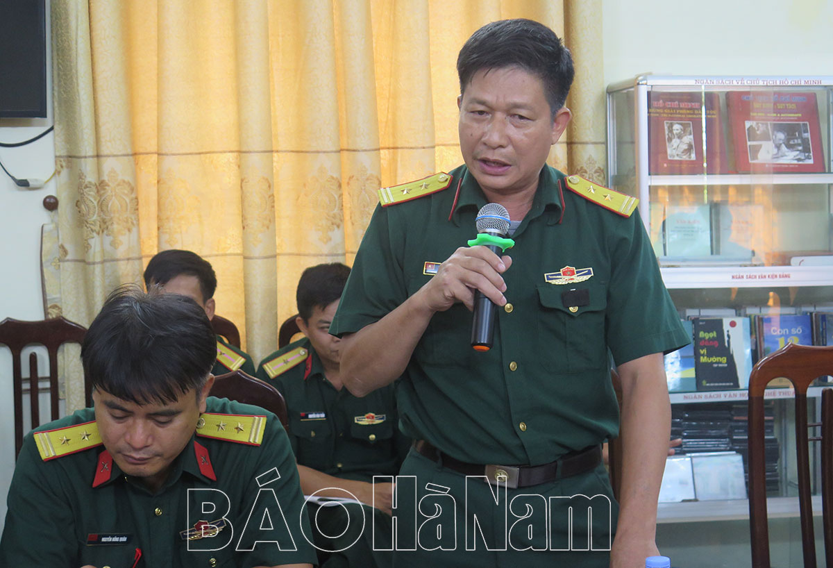 Cán bộ, sĩ quan Ban CHQS huyện Thanh Liêm trình bày ý kiến, kiến nghị tại buổi đối thoại.