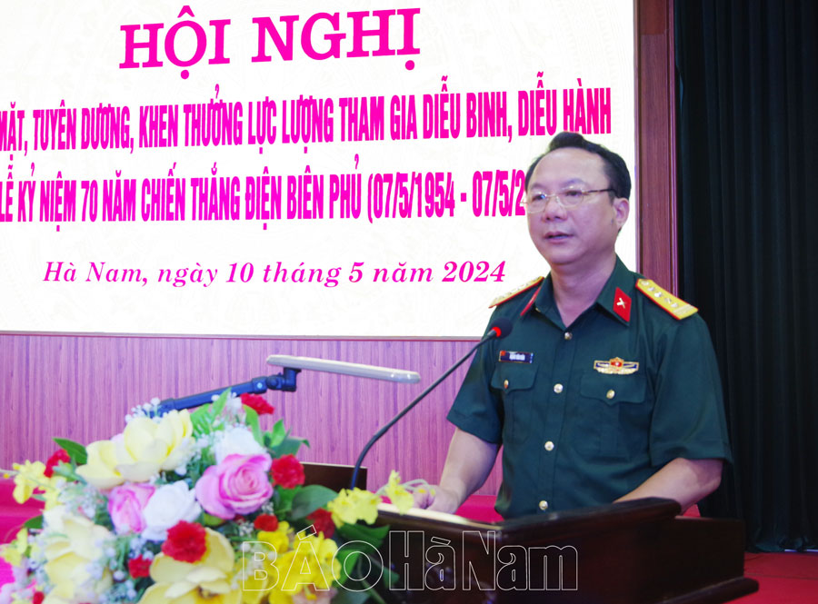 Phát biểu động viên lực lượng tham gia diễu binh, diễu hành, Đại tá Đặng Văn Hoà, Phó Chính uỷ Bộ CHQS tỉnh ghi nhận, biểu dương đoàn cán bộ, sĩ quan, quân nhân Hà Nam đã hoàn thành xuất sắc nhiệm vụ đơn vị giao.