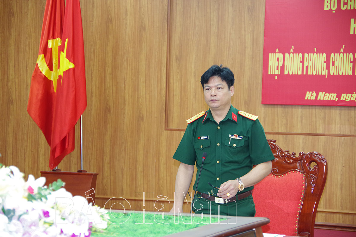 Đại tá Trịnh Đức Thiêm, Phó Chỉ huy trưởng Bộ CHQS tỉnh chủ trì hội nghị.