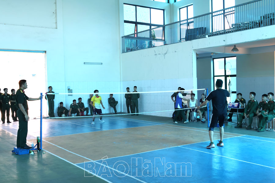 Các đội tuyển thi đấu cầu lông tại hội thao.Thi đấu nội dung bóng đá nam tại hội thao.