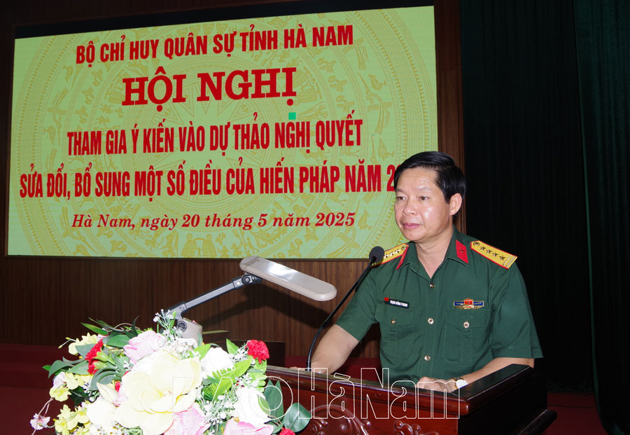 Chiều 20/5, Bộ CHQS tỉnh tổ chức hội nghị lấy ý kiến tham gia đóng góp vào Dự thảo Nghị quyết sửa đổi, bổ sung một số điều của Hiến pháp năm 2013. Đại tá Trịnh Hồng Phong, Ủy viên Ban Thường vụ Tỉnh ủy, Chỉ huy trưởng Bộ CHQS tỉnh chủ trì hội nghị.