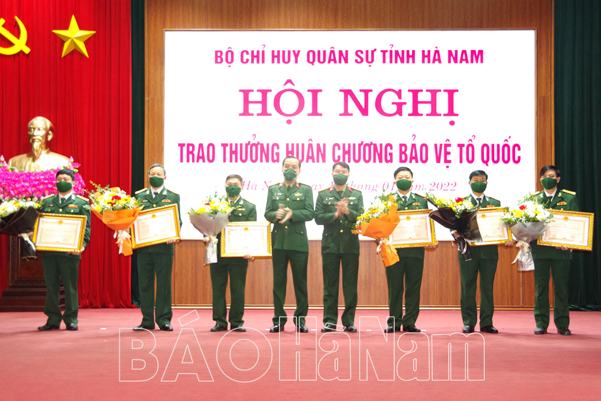Thừa ủy quyền của Chủ tịch nước, Thủ trưởng Bộ CHQS tỉnh trao Huân chương bảo vệ Tổ quốc cho các cá nhân có thành tích xuất sắc.Thủ trưởng Bộ CHQS tỉnh và các đơn vị ký kết giao ước thi đua năm 2022.
