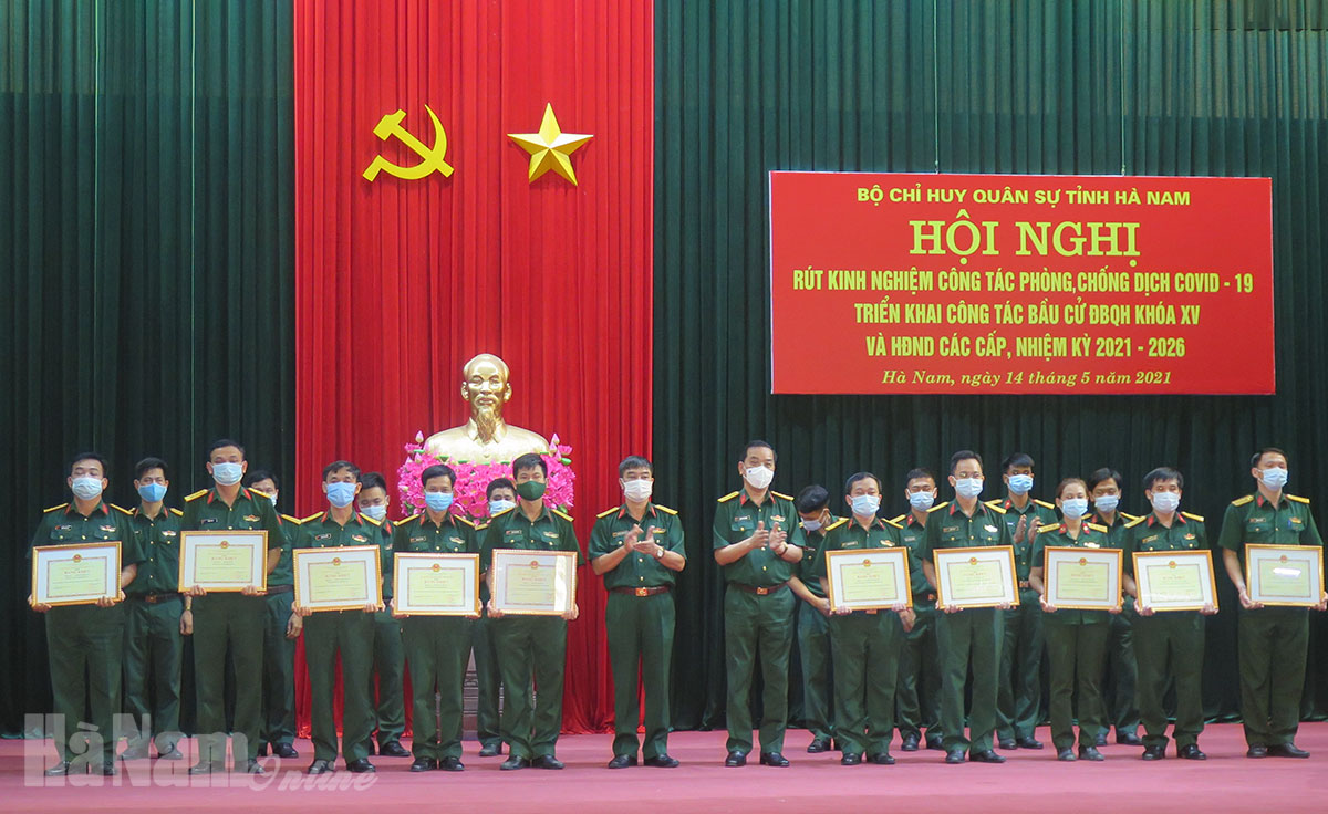 Chiều 14/5, Bộ CHQS tỉnh tổ chức hội nghị rút kinh nghiệm, trao thưởng công tác phòng chống dịch Covid-19; triển khai công tác chuẩn bị bầu cử đại biểu Quốc hội và HĐND các cấp nhiệm kỳ 2021-2026. Đồng chí Trần Xuân Dưỡng, TUV, Phó Chủ tịch UBND tỉnh đã tới dự.
