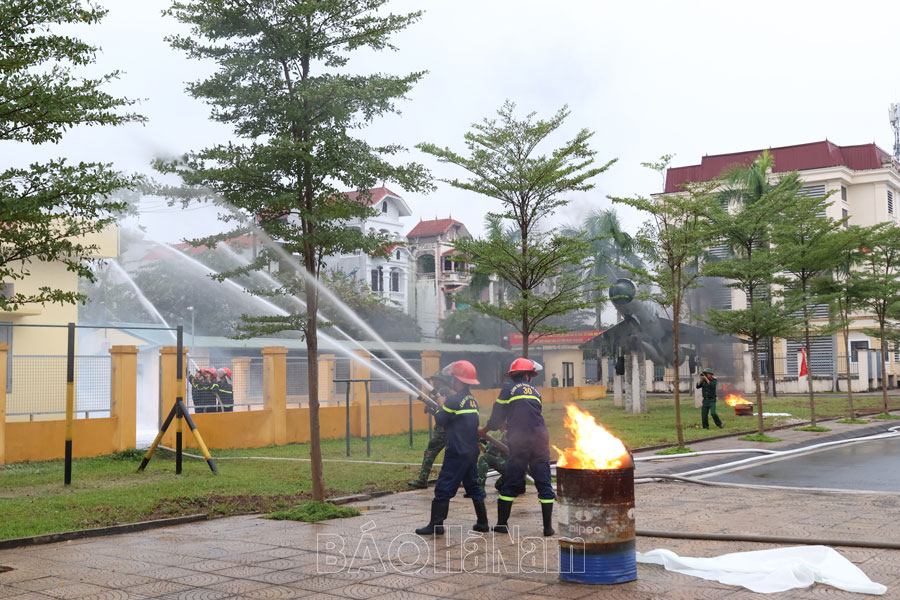 Thực hành xử trí tình huống chữa cháy kho xăng dầu.