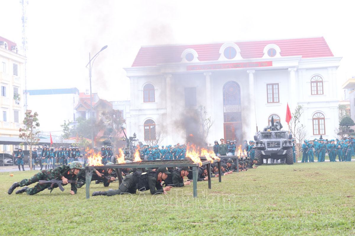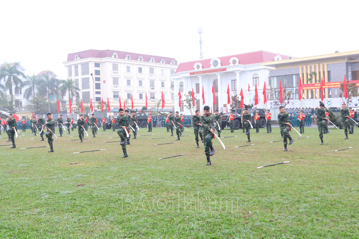 Tại lễ ra quân huấn luyện, LLVT tỉnh đã thực hành duyệt đội ngũ, trình diễn trống hội, biểu diễn võ thuật và các vũ điệu tập thể, tạo không khí vui tươi, phấn khởi trong CBCS LLVT. Đặc biệt, lực lượng quân sự - công an đã có màn phối hợp xử trí tình huống đánh bắt khủng bố giải cứu con tin linh hoạt, thể hiện sức mạnh của các LLVT trong công tác sẵn sàng chiến đấu, bảo vệ Đảng, chính quyền, nhân dân.
