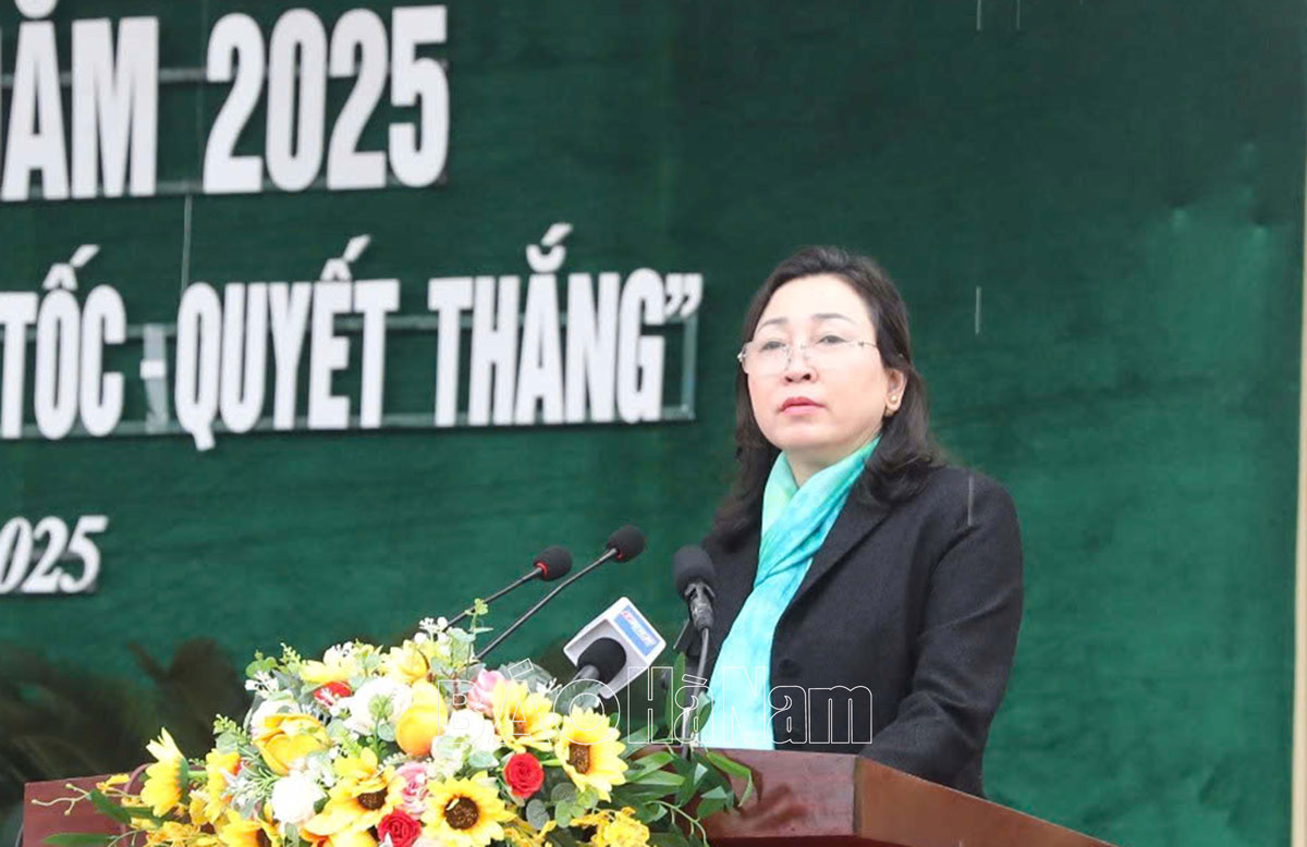 Phát biểu động viên CBCS LLVT tỉnh, đồng chí Phó Bí thư Thường trực Tỉnh ủy Đinh Thị Lụa biểu dương những thành tích của LLVT tỉnh đạt được thời gian qua. Đồng chí nhấn mạnh: Năm 2025, toàn Đảng, toàn dân, toàn quân đang ra sức thi đua lập thành tích chào mừng Kỷ niệm 50 năm Ngày giải phóng miền Nam, thống nhất đất nước, 80 năm Quốc khánh nước Cộng hòa xã hội chủ nghĩa Việt Nam, là năm tổ chức đại hội đảng bộ các cấp tiến tới Đại hội Đảng lần thứ XIV, đề nghị các cấp ủy, chính quyền, đoàn thể, địa phương và LLVT tỉnh tập trung lãnh đạo, chỉ đạo quán triệt, tổ chức thực hiện nghiêm túc, hiệu quả các nghị quyết, chỉ thị, mệnh lệnh của cấp trên và của Tỉnh ủy, UBND tỉnh về công tác QP, QS địa phương. Nâng cao chất lượng tổng hợp, khả năng sẵn sàng chiến đấu của LLVT tỉnh.