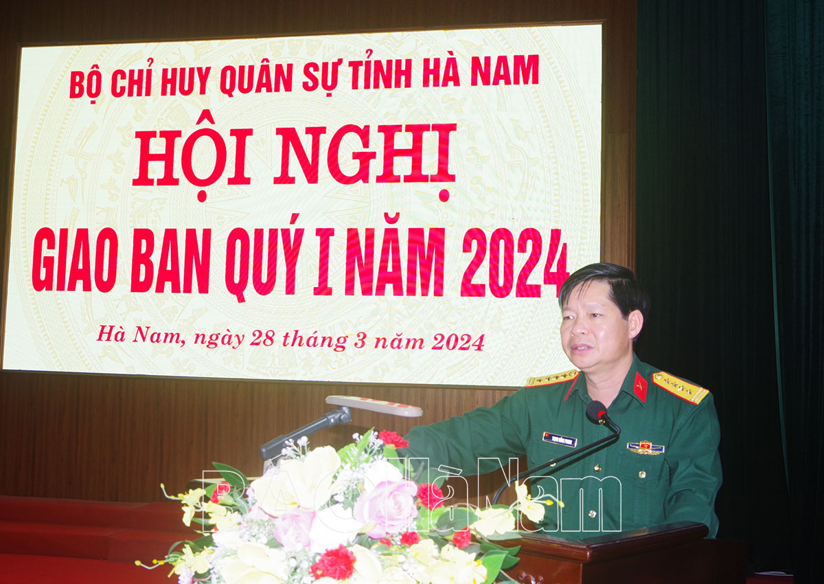 Sáng 28/3, Bộ CHQS tỉnh tổ chức hội nghị giao ban đánh giá kết quả công tác quý I, triển khai nhiệm vụ công tác quý II năm 2024. Đại tá Trịnh Hồng Phong, Phó Bí thư Đảng uỷ, Chỉ huy trưởng Bộ CHQS tỉnh chủ trì hội nghị.