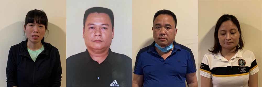 Từ trái qua gồm các bị can: Cao Thị Minh Thuận, Hoàng Mạnh Chiến, Nguyễn Mạnh Hà và Hoàng Thị Ánh Vân. Ảnh: Bộ Công an
