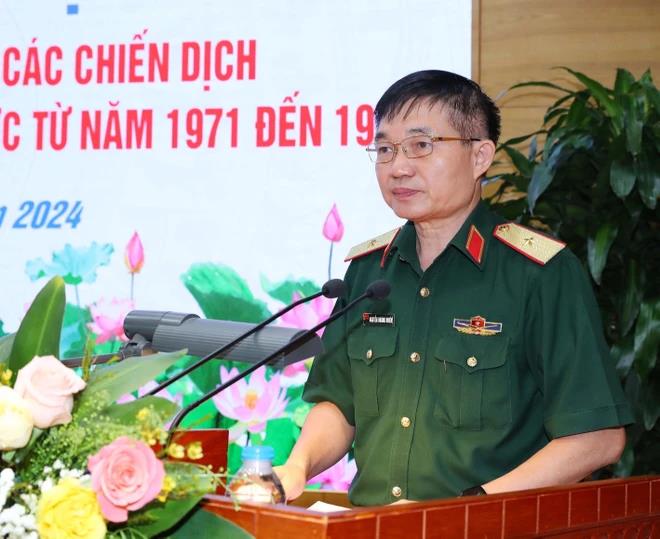 | Thiếu tướng, Tiến sỹ Nguyễn Hoàng Nhiên, Viện trưởng Viện Lịch sử Quân sự phát biểu. (Ảnh: Trọng Đức/TTXVN) |
