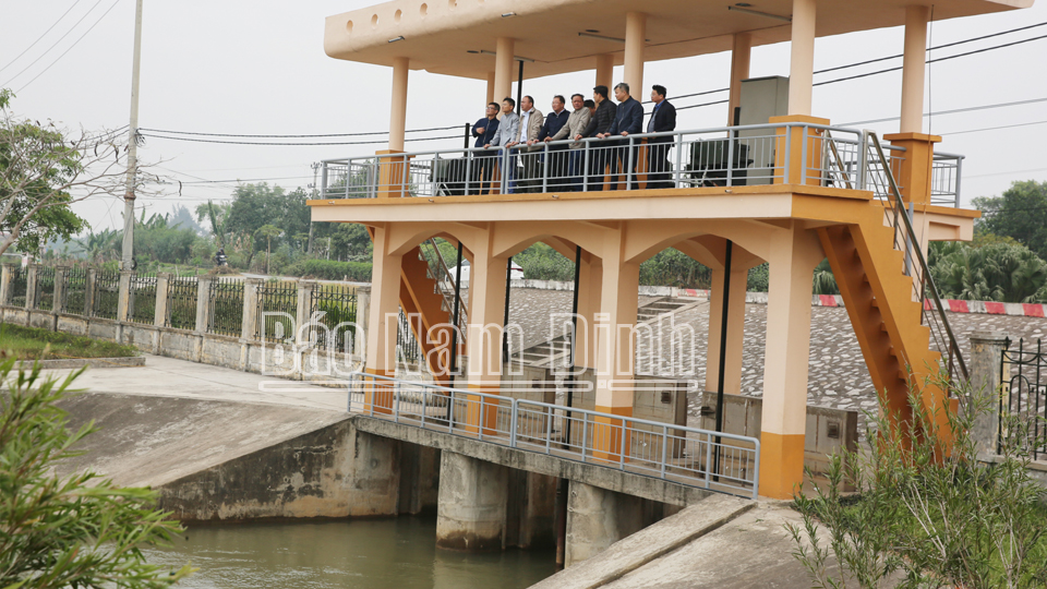 | Đoàn công tác của Bộ NN và PTNT kiểm tra tinh hình lấy nước tại Trạm bơm điện Cốc Thành (Vụ Bản). |