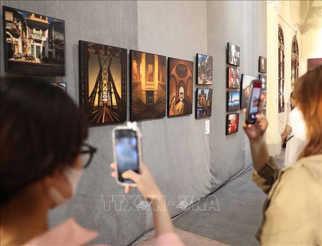 Các tác phẩm nhiếp ảnh được trưng bày trong triển lãm "Hà Nội - Một thành phố trong nhiếp ảnh" tại Trung tâm Văn hóa Nghệ thuật 22 Hàng Buồm. Ảnh: Thanh Tùng/TTXVN
