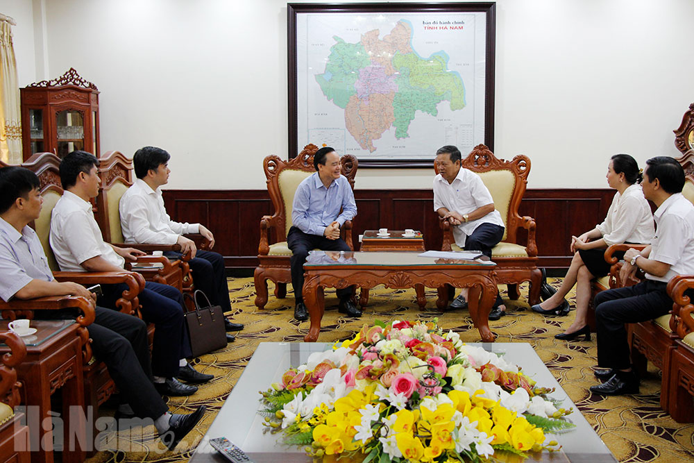 Tiếp và làm việc với đoàn có các đồng chí: Nguyễn Xuân Đông, Phó Bí thư Tỉnh ủy, Chủ tịch UBND tỉnh; Đinh Thị Lụa, Tỉnh ủy viên, Phó Chủ tịch UBND tỉnh, Trưởng Ban chỉ đạo (BCĐ) các kỳ thi năm 2020 tỉnh Hà Nam, lãnh đạo cácsở, ngành và thành viên BCĐ các kỳ thi năm 2020 tỉnh Hà Nam.