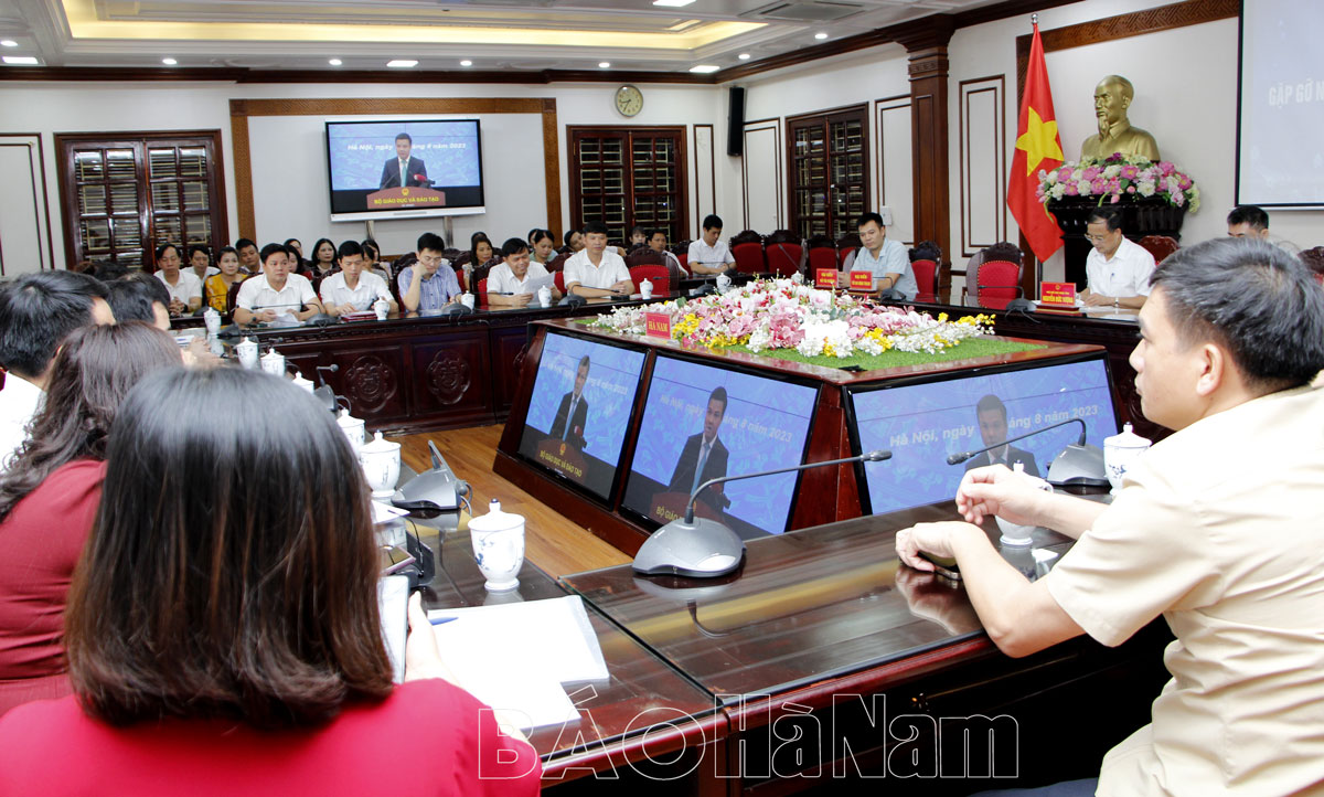 Dự hội nghị tại điểm cầu tỉnh Hà Nam có đồng chí Nguyễn Đức Vượng, TUV, Phó Chủ tịch UBND tỉnh; lãnh đạo Sở GD&ĐT, các huyện, thị xã, thành phố, cùng đông đảo cán bộ, giáo viên, nhân viên ngành giáo dục Hà Nam.