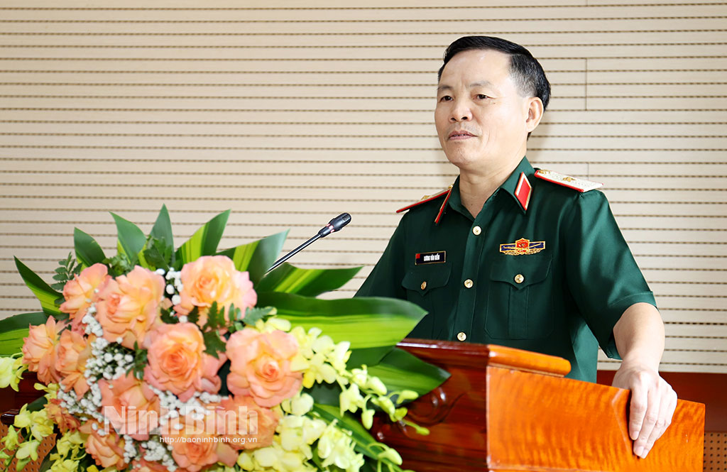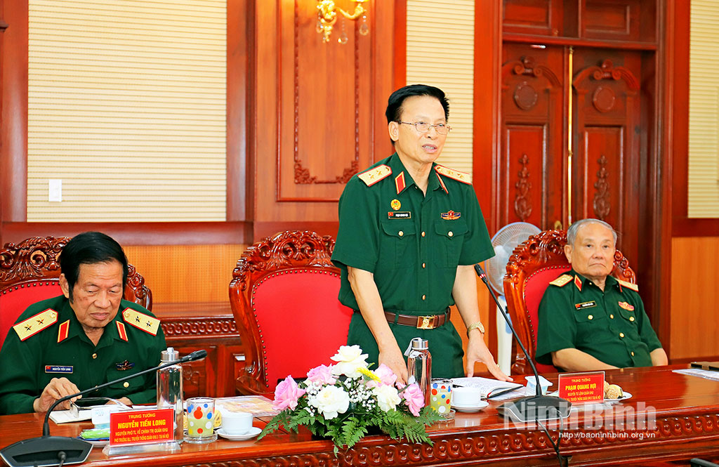 Trung tướng Phạm Quang Hợi, nguyên Tư lệnh Quân khu phát biểu tại buổi gặp mặt.Ban Liên lạc truyền thống Quân khu 3 tại thành phố Hải Phòng tặng bức tranh Chủ tịch Hồ Chí Minh cho LLVT Quân khu.