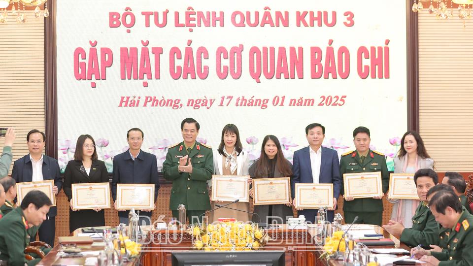 Nhân dịp này, Bộ Tư lệnh Quân khu 3 tặng Bằng khen cho 9 tập thể, 3 cá nhân có thành tích xuất sắc trong công tác phối hợp tuyên truyền về nhiệm vụ quân sự, quốc phòng của LLVT Quân khu năm 2024; trong đó có Báo Nam Định.