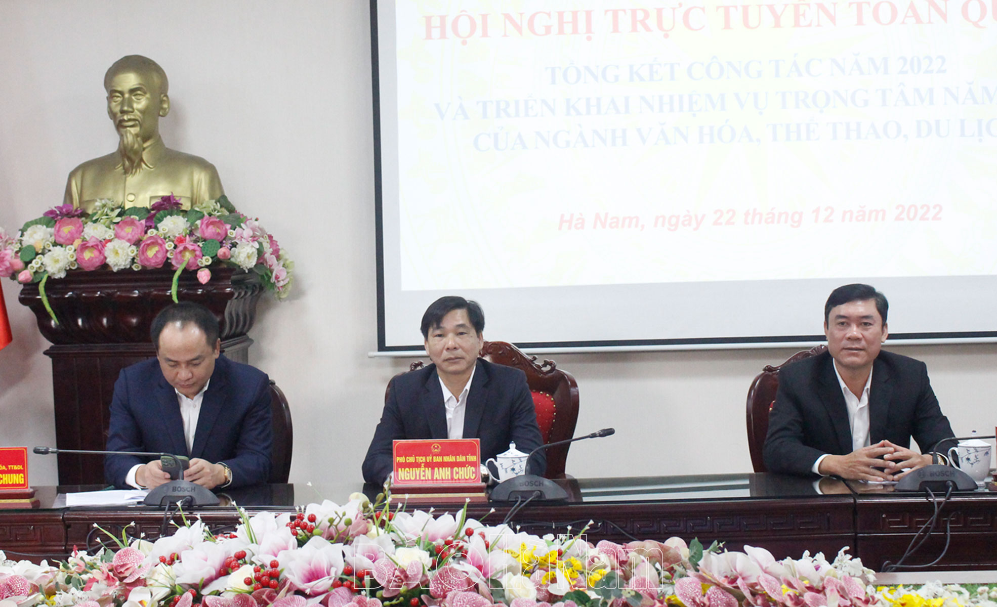 Dự hội nghị tại điểm cầu Hà Nam có đồng chí Nguyễn Anh Chức, Ủy viên BTV Tỉnh ủy, Phó Chủ tịch Thường trực UBND tỉnh; lãnh đạo Sở VH,TT&DL; trưởng, phó các phòng, ban, đơn vị trực thuộc Sở VH,TT&DL; phòng Văn hóa Thông tin; Trung tâm Văn hóa, Thông tin và Thể thao các huyện, thị xã, thành phố.