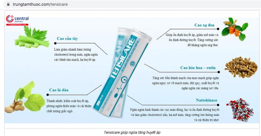 Viên sủi Tensicare quảng cáo trên trungtamthuoc.com bị Cục An toàn thực phẩm phát cảnh báo vi phạm.