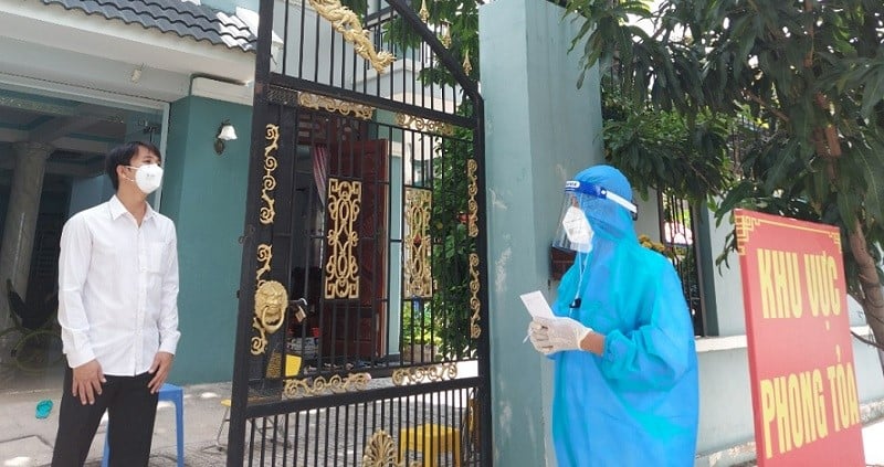 Nhân viên y tế đến kiểm tra sức khoẻ cho F0 cách ly tại nhà ở Bình Dương.
