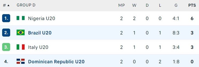 Ở lượt trận cuối, U20 Brazil sẽ lên đầu bảng nếu đánh bại được Nigeria. Ngay cả khi thua, đại diện Nam Mỹ cũng có cơ hội đi tiếp thông qua vé dành cho một trong những đội thứ 3 có thành tích tốt.