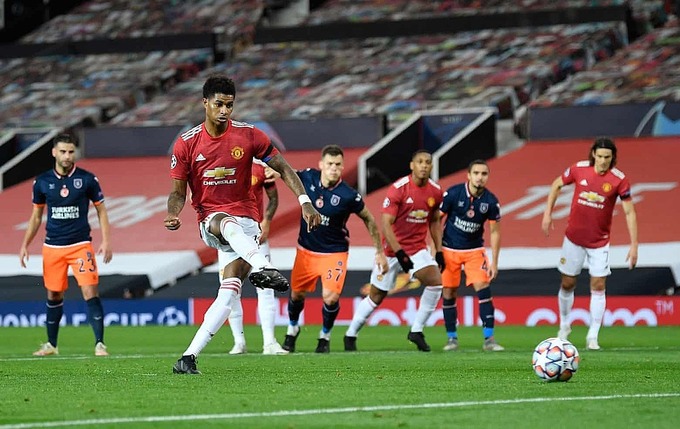 Phút 33, Rashford xâm nhập cấm địa Basaksehir, và bị hậu vệ đội khách xô ngã. Là chuyên gia đá phạt đền, nhưng Bruno nhường quyền sút cho Rashford. Số 10 "Quỷ đỏ" đánh lừa thủ thành Gunok, và hiện là chân sút ghi bàn nhiều thứ nhì ở Champions League mùa này, với năm bàn, chỉ sau Erling Haaland.