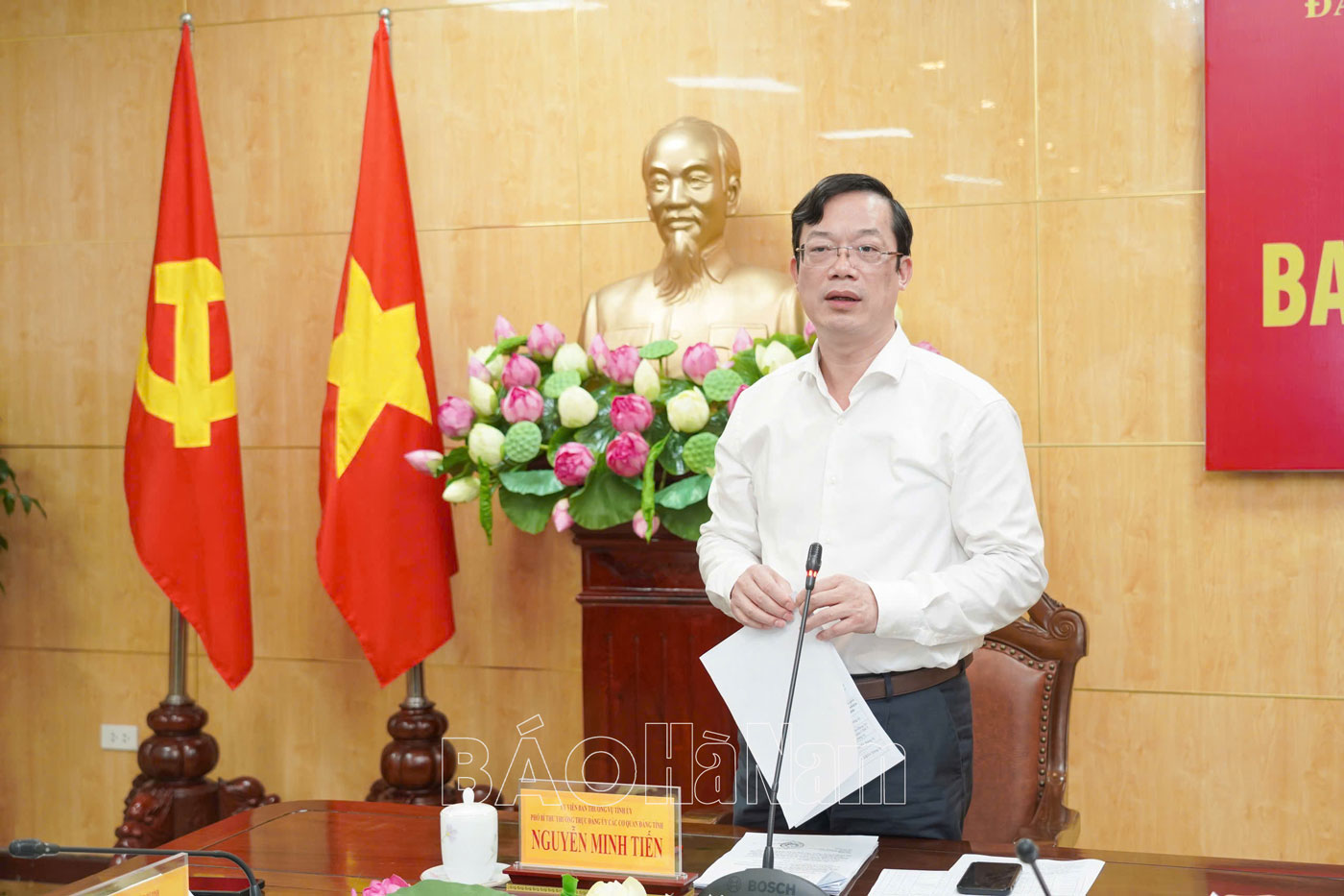 Đồng chí Nguyễn Minh Tiến, Ủy viên Ban Thường vụ Tỉnh ủy, Phó Bí thư Thường trực Đảng ủy các cơ quan Đảng tỉnh phát biểu kết luận hội nghị.