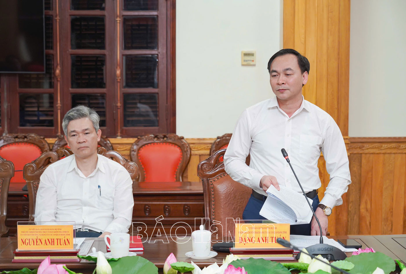 Đồng chí Lê Xuân Huy, Tỉnh ủy viên, Phó Chủ tịch HĐND tỉnh phát biểu tại hội nghị.Đồng chí Đặng Anh Tuấn, Tỉnh ủy viên, Phó Bí thư chuyên trách Đảng ủy các cơ quan Đảng tỉnh phát biểu tại hội nghị.