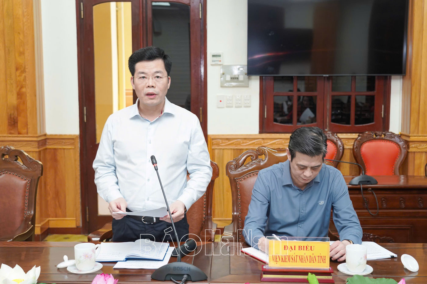 Đồng chí Trần Đức Thuấn, Tỉnh ủy viên, Phó Trưởng Ban Tổ chức Tỉnh ủy phát biểu tại hội nghị.Đại biểu Viện Kiểm sát nhân dân tỉnh phát biểu tại hội nghị.