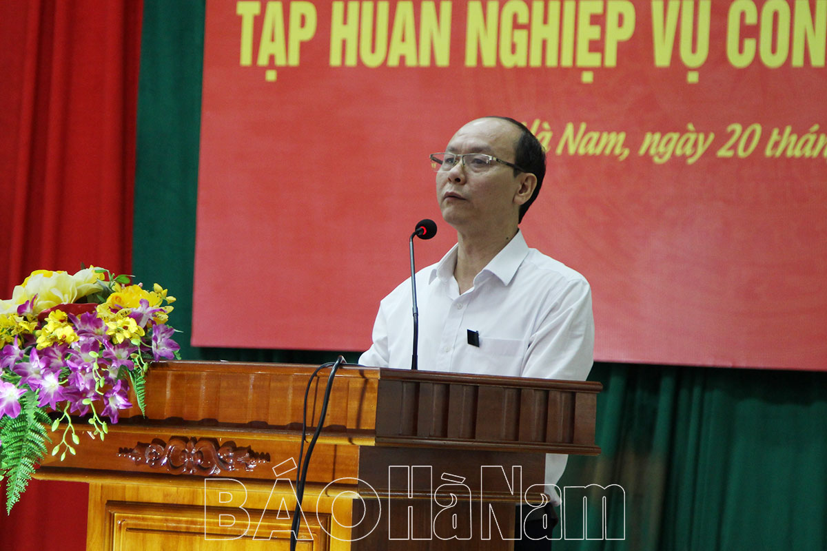 Đồng chí Nguyễn Ngọc Oanh, Tỉnh ủy viên, Bí thư Đảng ủy Khối Doanh nghiệp tỉnh phát biểu chỉ đạo lớp tập huấn.